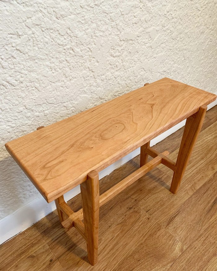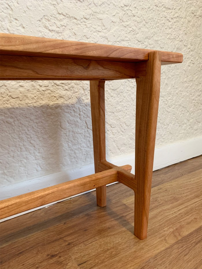 Although it’s named the capilla bench (spanish for chapel), this set of benches was designed and made for a dining table. A mix of wood joinery is used to connect the frame.