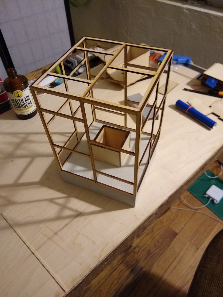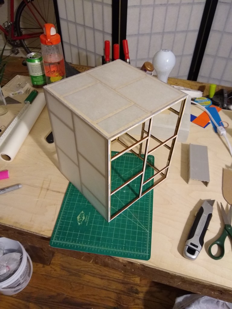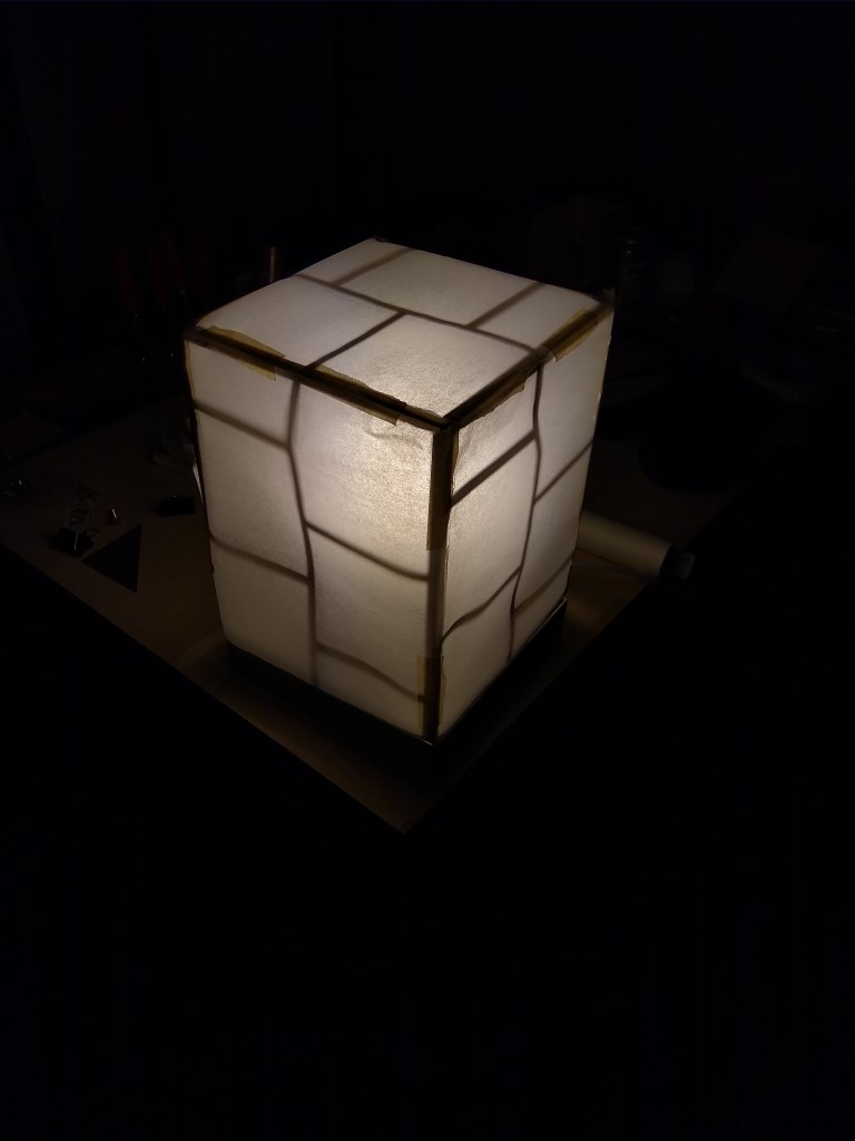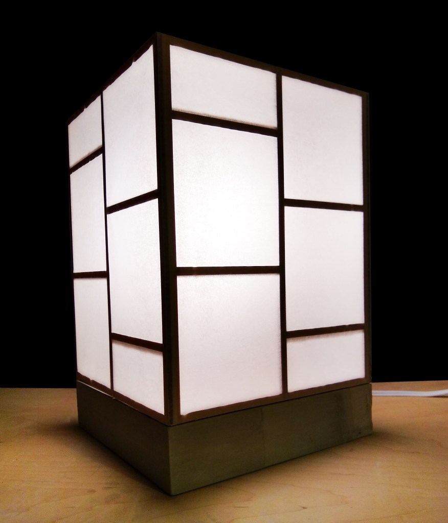 constructed out of basswood (frame), tracing paper (shade), and cast concrete (base)